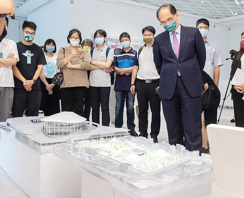 Legislative Speaker You Si-kun yesterday in Taipei inspects design proposals for a new Legislative Yuan building.