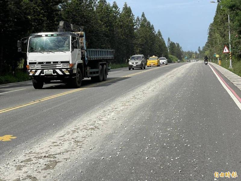 澎湖機場聯外道路水泥預拌車碎石散落路面  縣府開罰