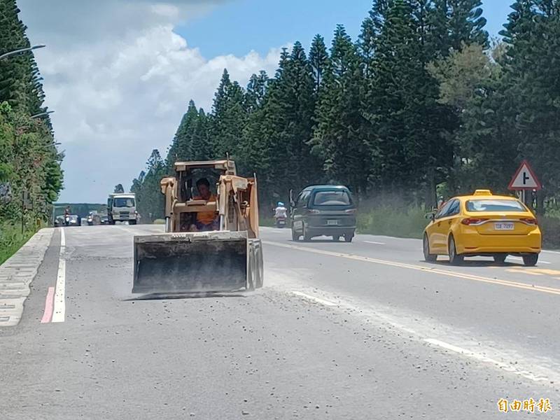 澎湖機場聯外道路水泥預拌車碎石散落路面 縣府開罰