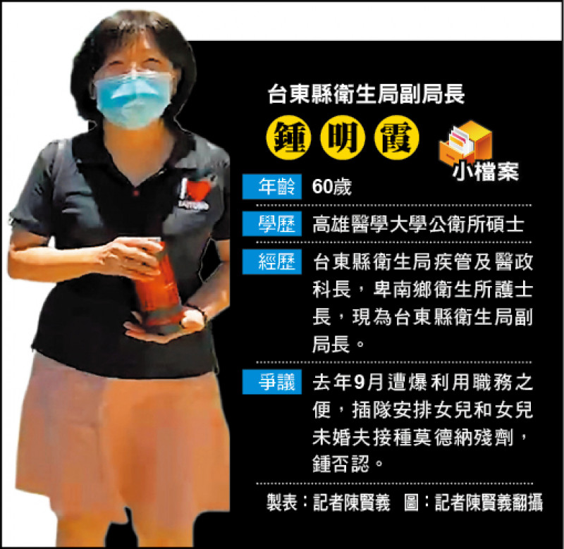 〔記者陳賢義/台東報導〕台東縣政府不到一個月,三個局處接連涉弊案遭檢廉調偵辦,縣衛生局被檢舉活動、差旅及加班經費核銷疑有弊端,台東縣調查站昨動員前往衛生局調卷,帶回相關資料,並傳訊人事及會計人員,及帶回時任業務單位承辦主管、現為台東縣衛生局副局長鍾明霞說明,台東地檢署表示已將鍾列為被告,鍾在記者截稿前仍由檢調訊問中。