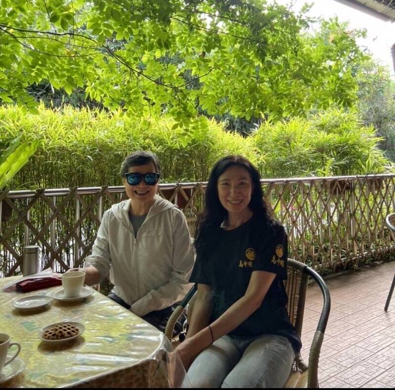 台灣觀光協會會長葉菊蘭(左)到嘉義縣山區輕旅行。,在梅山鄉瑞里優閒喝咖啡(林淑媛提供)