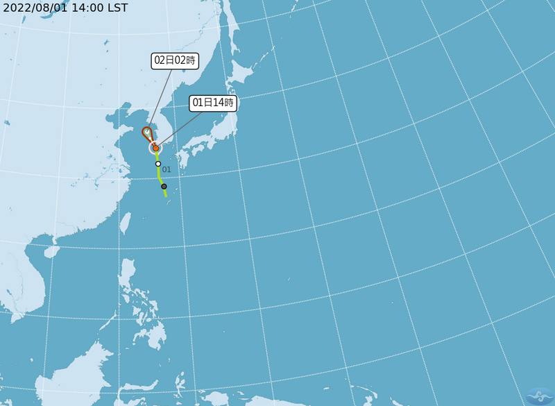 今年第6號颱風「翠絲」,今日下午2點位於距離台北的北北東方1140公里處,朝北北西前進,即將減弱為熱帶性低氣壓,對台灣沒有直接影響。